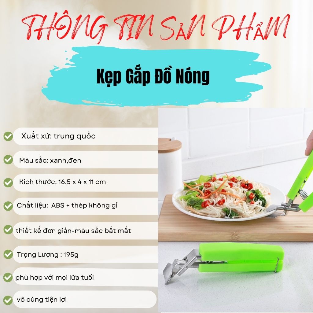 ♘ Đầu gắp được làm từ chất liệu cao cấp, chắc chắn và chịu nhiệt, chịu lực tốt. Chính vì vậy, khi gắp đĩa, tô nóng từ nồi hấp, lò vi sóng bạn sẽ thật yên tâm, không lo bị nóng, bỏng.