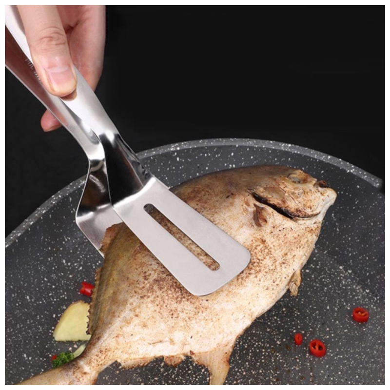 DỤNG CỤ KẸP GẮP TIỆN DỤNGDụng cụ kẹp và lật thịt , kẹp cá chiên, xẻng chiên trứng , kẹp thực phẩm nóng đa năng loại lớn inox 304 cao cấp siêu bền