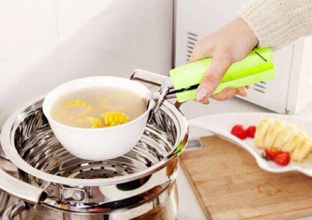 >>>>>>>>Kẹp gắp nóng thức ăn tiện lợiNhững chiếc nồi nóng bỏng, những chiếc bát đĩa trong lò vi sóng, trong nồi vừa hấp xong có thể làm bỏng tay chị em chúng ta khi vô tình chạm phải. Đôi khi những chiếc lót tay không phát huy hết tác dụng những lúc cần thiết. Đừng lo, đã có dụng cụ kẹp gắp bát đĩa nóng, dụng cụ tiện ích này cho bạn dễ dàng lấy mọi món đồ nóng bỏng
