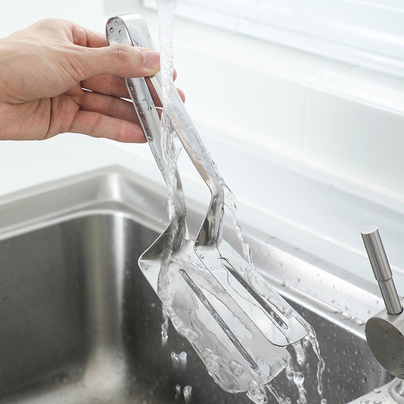 Kẹp gắp thức ăn ADERO kẹp thức ăn đồ nóng chất liệu inox đa năng tiện lợi AD48Kẹp gắp thức ăn là vật dụng dùng để gắp thức ăn trong các bữa tiệc. Lưỡi gắp có hình răng cưa, khi gắp đồ sẽ chặt và không bị vỡ, nát. Đồng thời tạo ra ma sát, tránh trơn trượt và đảm bảo lượng dầu còn lại trên thức ăn là ít nhất.