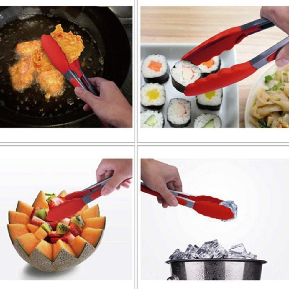 - Kẹp Gắp Thức Ăn Đa Năng được làm từ chất liệu thép không gỉ và silicon an toàn cho sức khỏe.