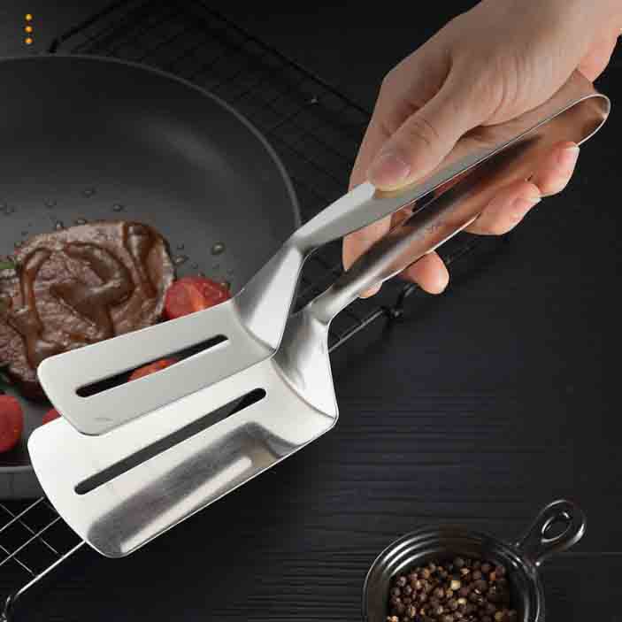 Với thiết kế thông minh, kẹp gắp chuyên dụng cho các món chiên rán như cá rán, thịt nướng, bít tết,...
