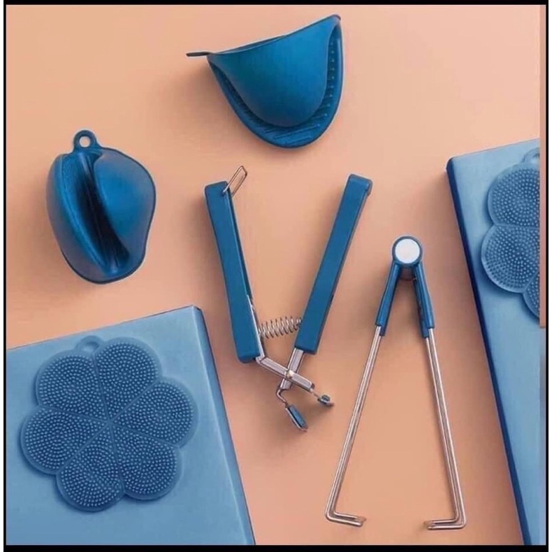 • Bộ sản phẩm kẹp gắp thức ăn bao gồm 6 chi tiết: 1 kẹp gắp đĩa, 1 kẹp nhấc bát, 2 lót tay hình mỏ vịt và 2 miếng rửa bát gai silicone