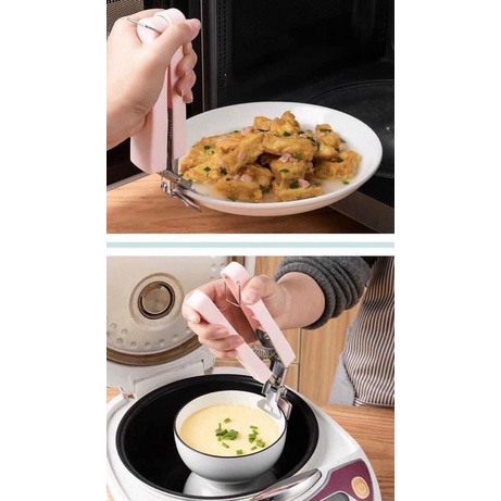 • Kẹp gắp được thiết kế như 1 chiếc kìm với một đầu kim loại chắc chắn, tay cầm nhựa cách nhiệt, đầu kim loại có tác dụng giữ chặt vật thể, giúp bạn dễ dàng gắp tô, chén nóng mà không sợ bị bỏng