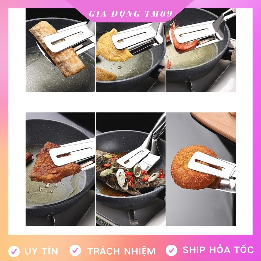 Kẹp Gắp Thức Ăn Đồ Nóng Inox, Chiên Xẻng Nướng Dụng Cụ Gắp Đồ Nóng Như Bít Tết, Cá Rán, Thịt NướngNhững chiếc lót tay có thể giúp chị em bắc nồi nhưng thật khó sử dụng với những bát đồ ăn trong nồi hấp, hay trong lò vi sóng. Những chiếc bát đôi khi rất nhỏ lại đựng đầy đồ ăn, chiếc lót tay sẽ thật bất tiện. Đây chính là lúc bạn sử dụng chiếc kẹp gắp thức ăn chống nóng.