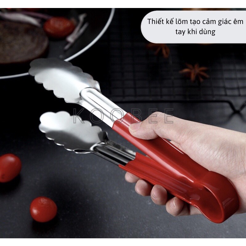 Kẹp Gắp Thức Ăn, Đồ Nướng, Chiên Rán INOX Cán Đỏ Chống Nóng Cao Cấp