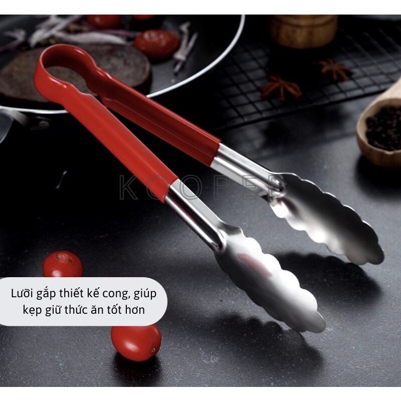Giới thiệu Kẹp Gắp Thức Ăn, Đồ Nướng, Chiên Rán INOX Cán Đỏ Chống Nóng Cao Cấp
