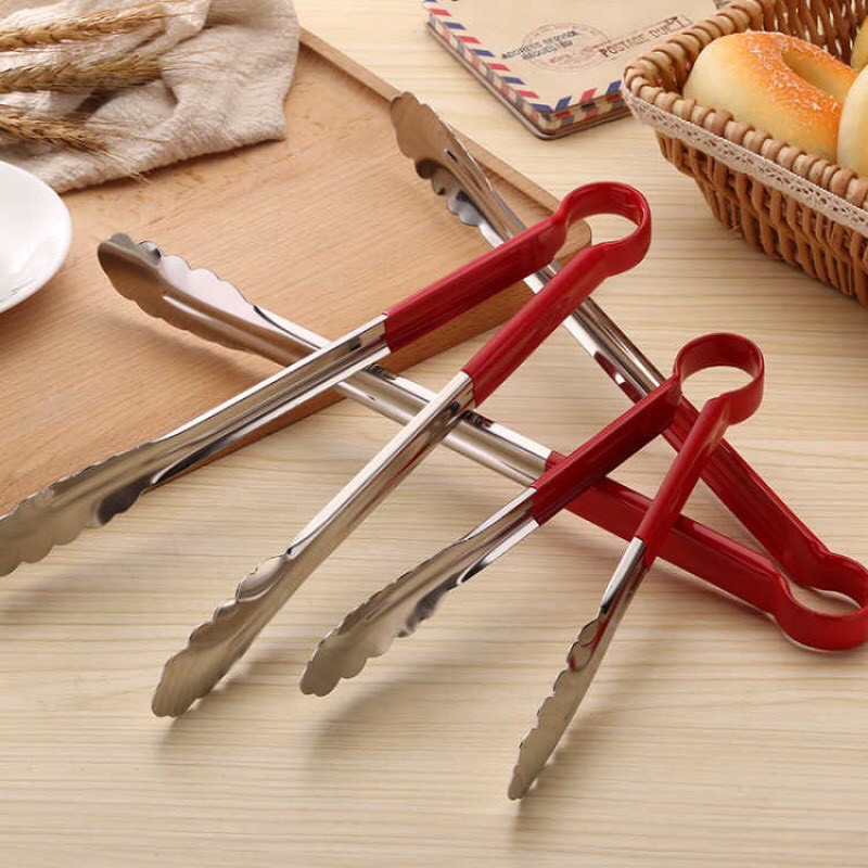 Nhà cửa & Đời sống > Dụng cụ nhà bếp > Cây vét bột & đồ gắp thức ăn || Kẹp gắp thức ăn, đồ nướng, chiên rán INOX cán đỏ chống nóng cao cấp đủ 3 sizeCòn hàng