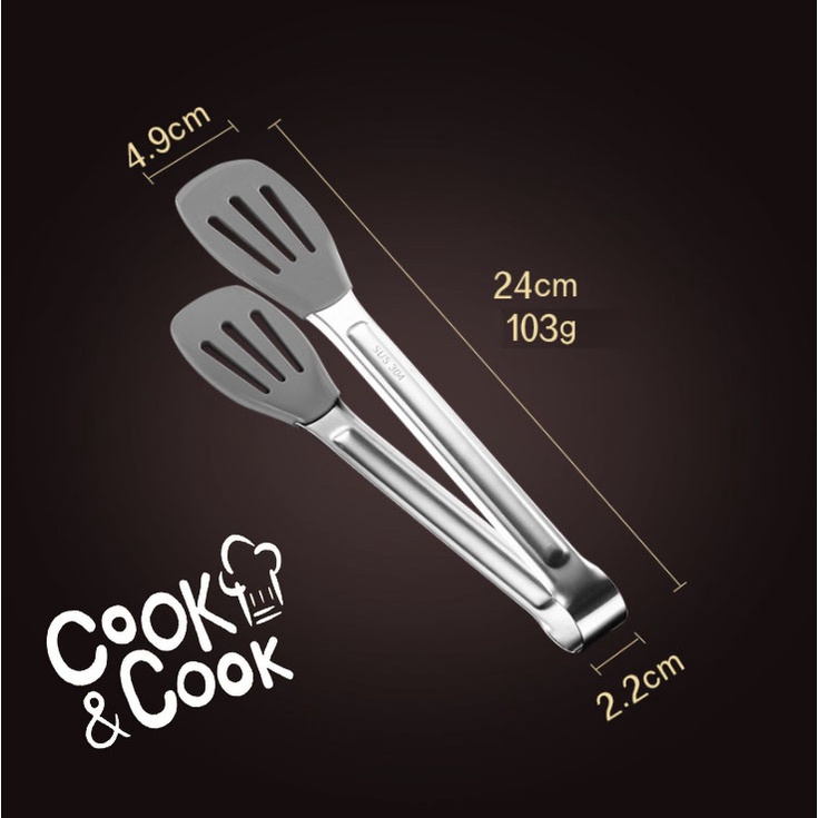 Nhà cửa & Đời sống > Dụng cụ nhà bếp > Cây vét bột & đồ gắp thức ăn || Kẹp gắp thức ăn inox 304 đầu silicon xám - SSGP 24cm, 103gCòn hàng
