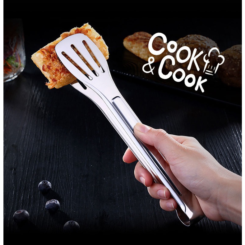 - Kẹp gắp thức ăn được làm từ thép inox không gỉ, có thể sử dụng ở nhiệt độ cao thấp khác nhau.