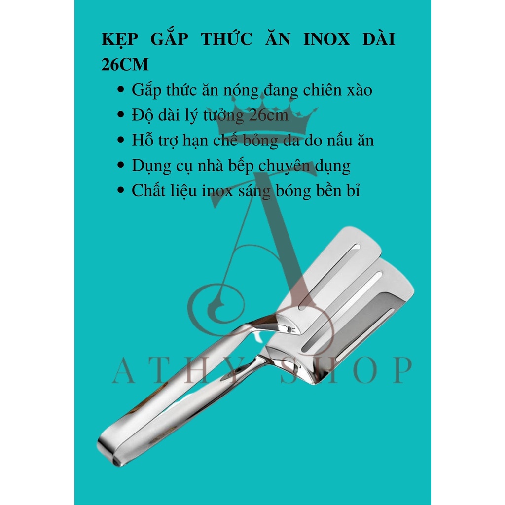 KẸP GẮP THỨC ĂN INOX DÀI 26CM dụng cụ đảo thực phẩm chiên xào thanh gắp food chống nóng hỗ trợ chống bỏng da khi nấu