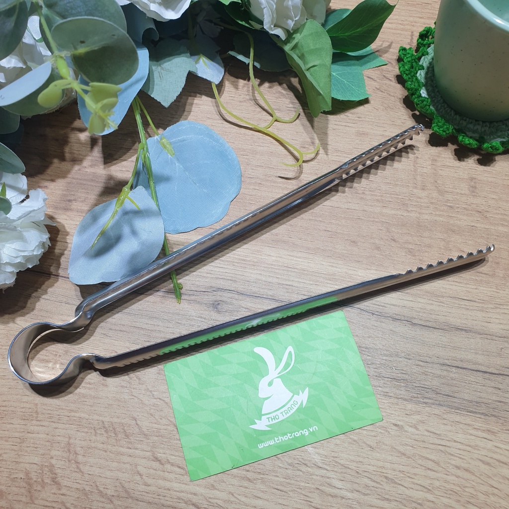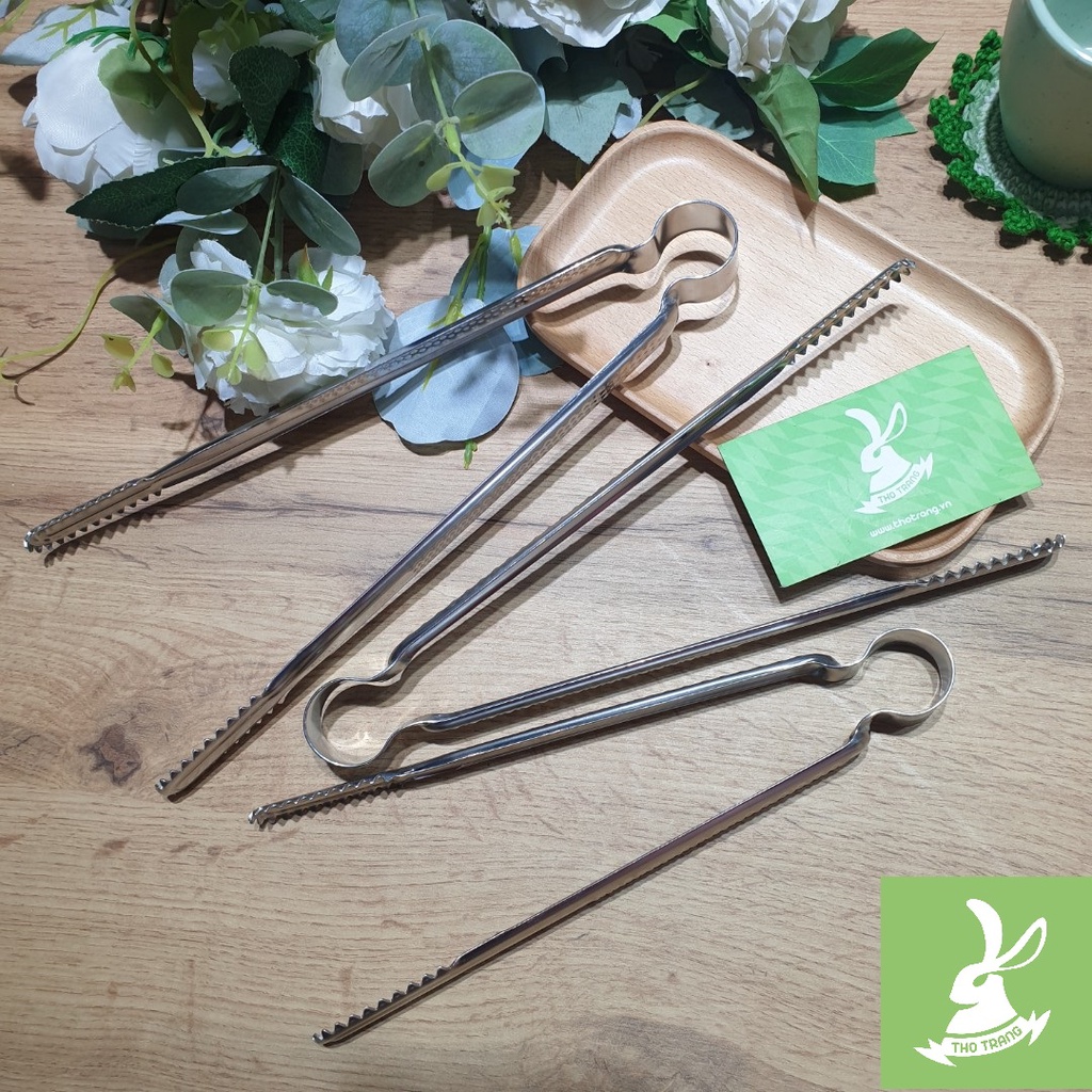 - Kẹp Inox dùng để gắp thức ăn, gắp đá lạnh, thức ăn chiên xào, lật thức ăn nướng than...