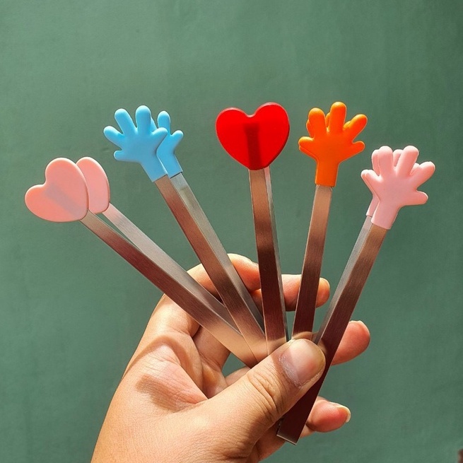 Kẹp gắp thức ăn mini đầu silicon hình bàn tay, trái tim,...cán inox dễ thương, gắp đá, gắp đồ nóng, bánh, kẹo,...