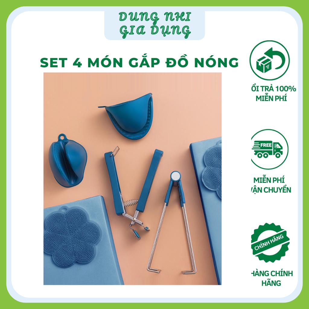 Kẹp gắp thức ăn set 4 chi tiết tiện dụng gắp đồ nóng chống bỏng da tay đa năng tiện dụng với chất liệu inox và silicon