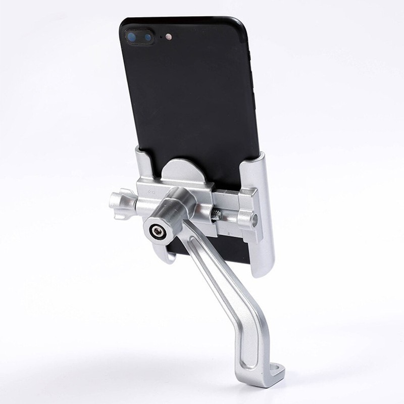 Đế gắn điện thoại trên xe máy được sử dụng để kẹp vào phần ghi đông phía trước xe, thuận thiện cho việc sử dụng mọi lúc mọi nơi.