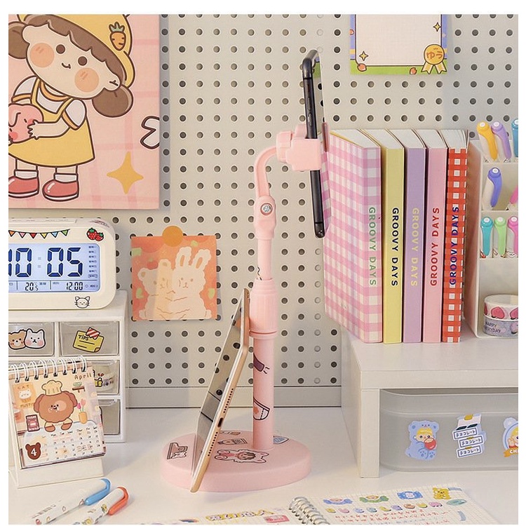 Giá đỡ điện thoại để bàn dễ thương thiết kế kẹp điện thoại , giá đỡ ipad xoay 360 độ thông minh đế chân tròn đa năng*Mô tả sản phẩm: