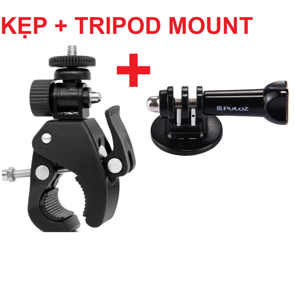 Kẹp giữ camera GoPro máy ảnh hoặc điện thoại lên xe máy, xe đạp hoặc các thanh treo dạng tròn