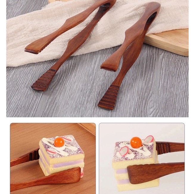 Kẹp gỗ màu nâu BAMBOOO ECO gắp đồ ăn bánh ngọt, trộn salad tiện dụng