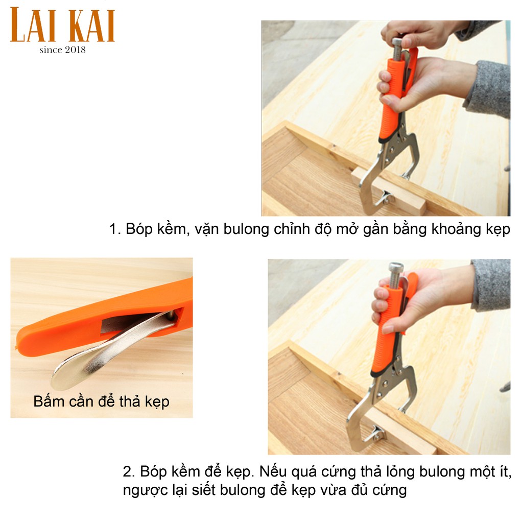 Sản phẩm có khả năng kẹp rất cứng, dùng cố định vật cần thao tác một cách nhanh chóng và thuận tiện, phù hợp dùng kèm cữ khoan ốc cam cữ khoan chéo.