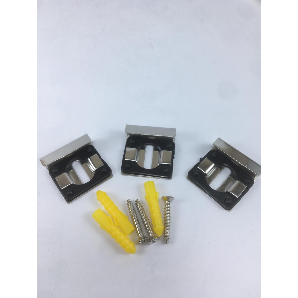 - Chất liệu inox có đệm cao su mặt trong giúp bảo vệ gương tốt nhất.- Bộ chân kẹp gương treo nhà tắm gồm 3 cái. - 1 cái kẹp bên trên - 2 cái kẹp bên dưới giúp gương được ốp vào tường