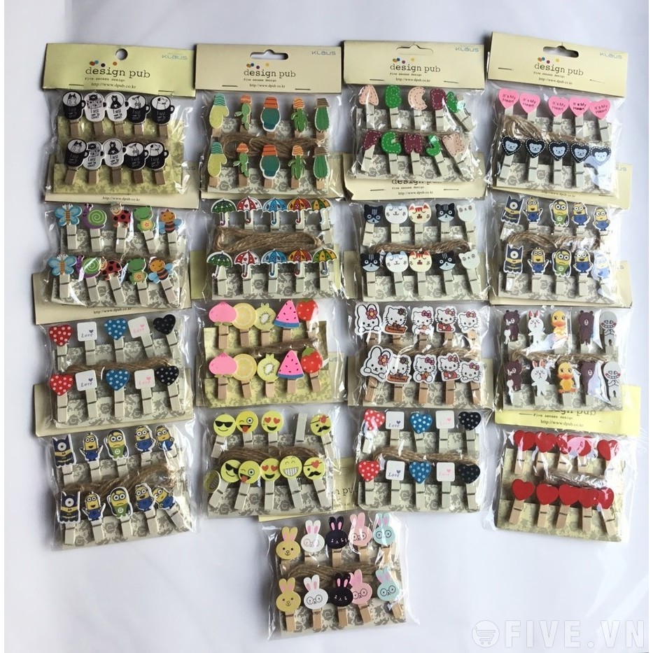 Giới thiệu Kẹp Hình Kèm Dây Kẹp Ảnh Gỗ Nhiều Mẫu Hình Cực Xinh (vỉ 10 kẹp+dây)