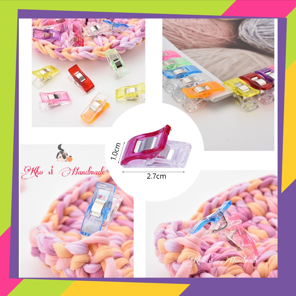 Kẹp hỗ trợ khâu lót túi có chất liệu bằng nhựa và kim loại. Chị em có thể sử dụng nó khi may để kẹp 2 cạnh của lớp vải lại với nhau để không bị lệch ra ngoài. Kẹp hỗ trợ khâu lót túi có rất nhiều màu sắc khác nhau cho chị em lựa chọn.- 1 gói 4 cái