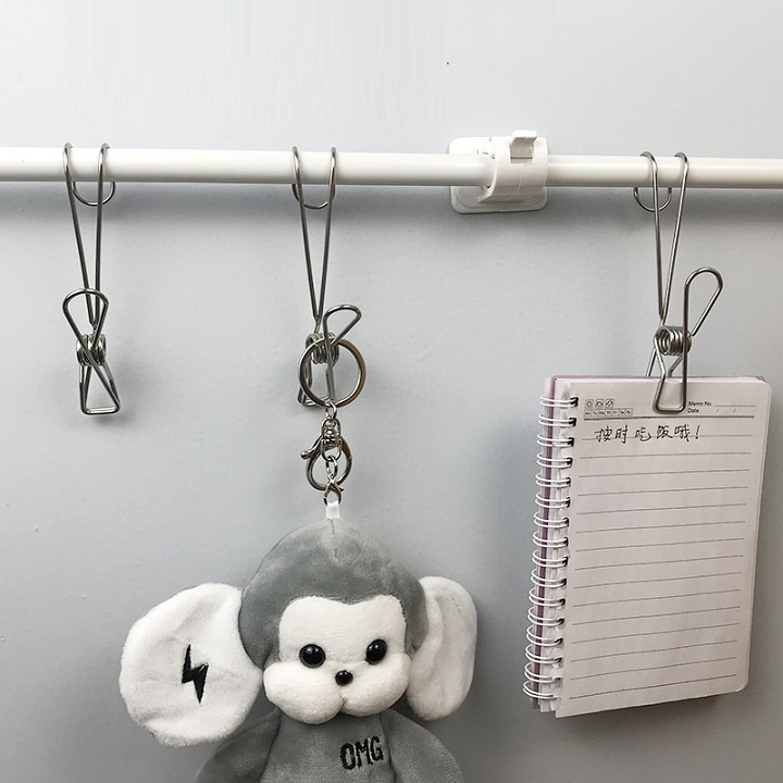 - Treo trực tiếp lên dây treo, thanh sắt hoặc inox, kệ tủ, khung cửa,... bất kì chỗ nào bạn muốn treo đồ, dùng để kẹp giấy note mắc ở bàn học không sợ bị bung bay mất...