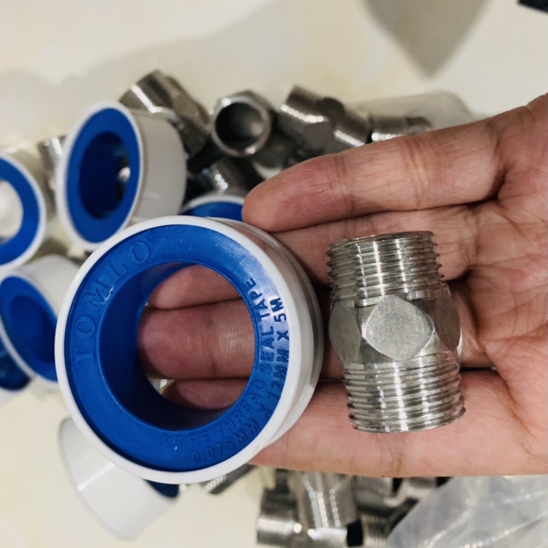 Giới thiệu Kép inox ren 21, ren 2 đầu, chậu rửa mặt, bồn cầu, bình nóng lạnh ren 21.