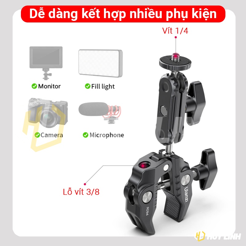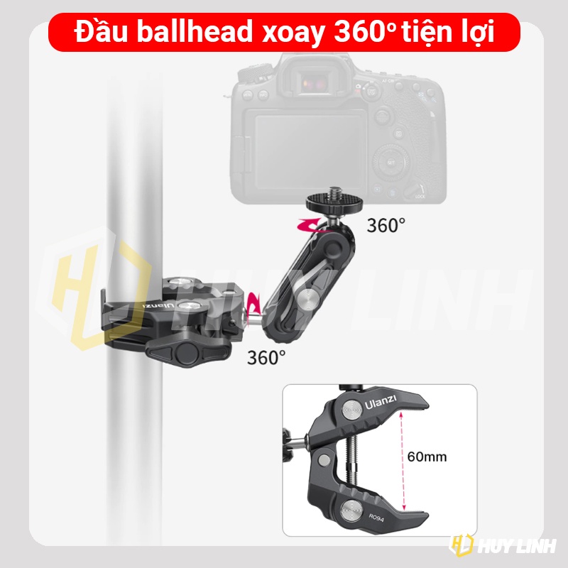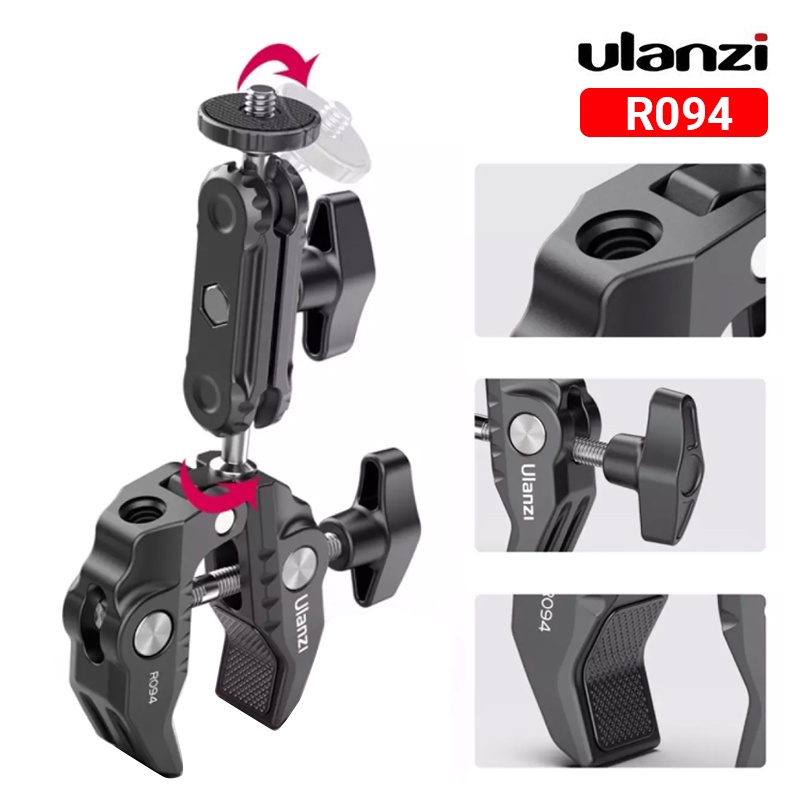 Cameras & Flycam > Phụ kiện máy ảnh > Khác || Kẹp kim loại đa năng Ulanzi R094 tích hợp Magic ArmCòn hàng