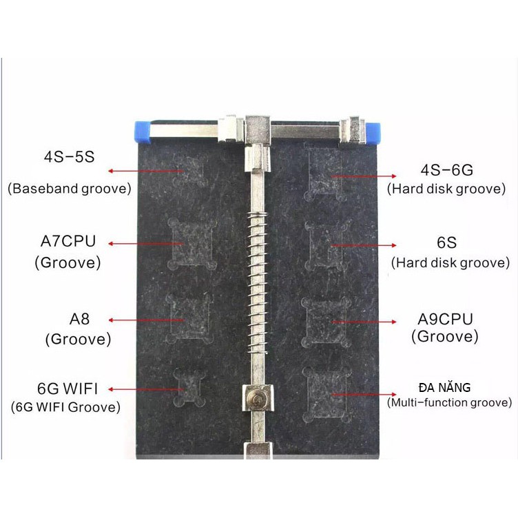 - Tích hợp nhiều công năng: kẹp bo, cạo keo các linh kiện: IC wifi, ổ cứng, baseband, CPU A8, CPU A7, CPU A9....