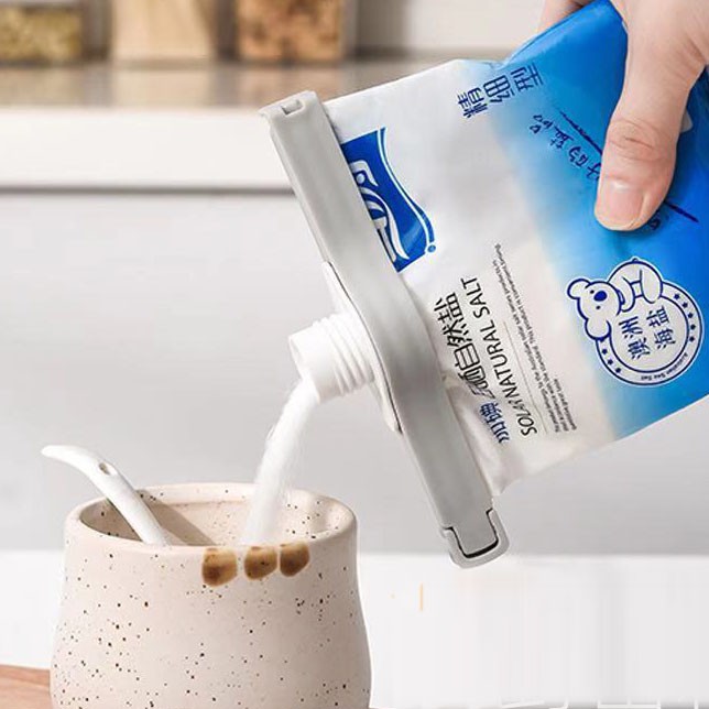 ✔️HDSD: Cắt miệng túi, cho nắp vào miệng túi, dùng kẹp kẹp miệng túi lại. Khi sử dụng chỉ việc mở nắp ra đổ là xong