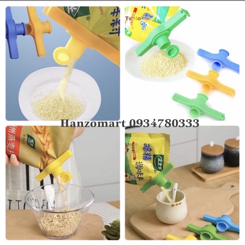 ✔️HDSD: Cắt miệng túi, cho nắp vào miệng túi, dùng kẹp kẹp miệng túi lại. Khi sử dụng chỉ việc mở nắp ra đổ là xong