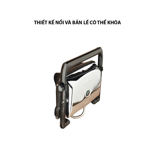 - Chiếc lò nướng điện với thiết kế nổi và bản lề có thể khóa, cho phép nấu thêm những loại thức ăn dày.