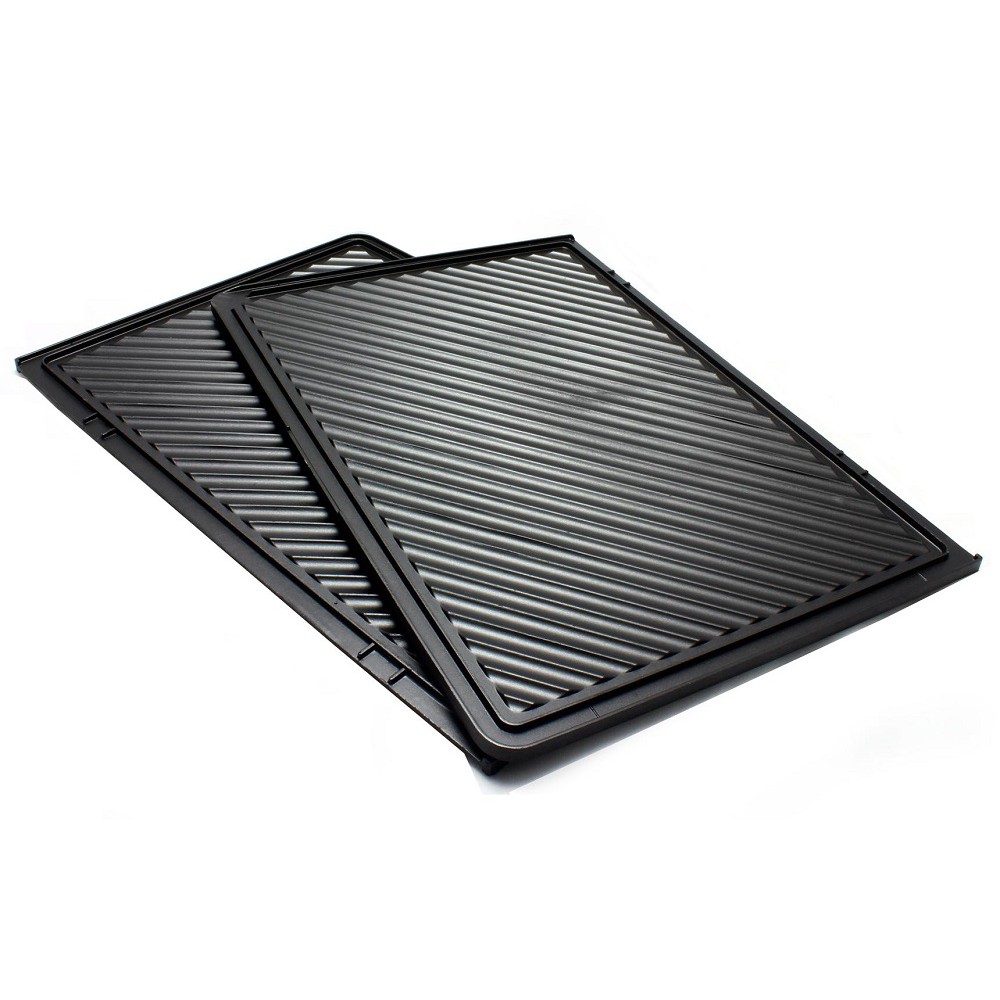 - Chất liệu nhôm phủ lớp chống dính: Mặt nướng làm bằng chất liệu hợp kim nhôm đảm bảo độ bền của sản phẩm, giữ chảo không bị biến đổi khi tiếp xúc nhiệt độ cao trong thời gian dài. Lớp chống dính có tác dụng hạn chế dầu mỡ và ngăn thức ăn dính vào mặt nướng, đồng thời dễ dàng vệ sinh sau khi sử dụng.