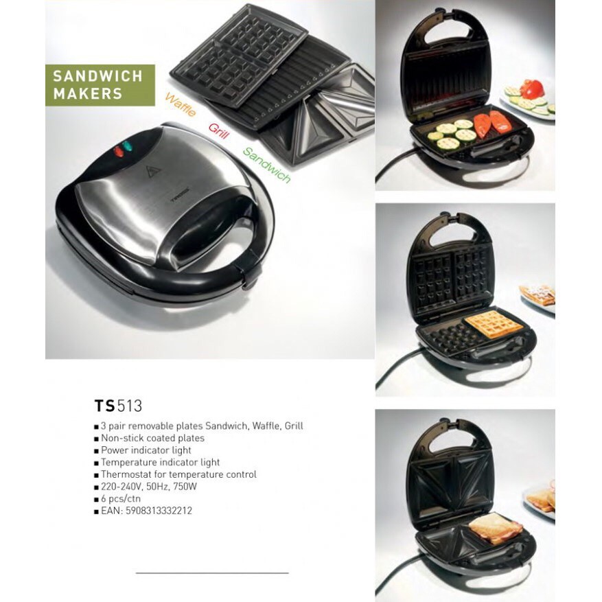 Giới thiệu [Mã ELHADEV giảm 4% đơn 300K] Kẹp nướng sanwich 3 trong 1 Tiross TS513, 3 Khay, Sản Phẩm Chính Hãng, Bảo Hành 12 Tháng