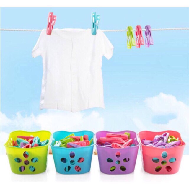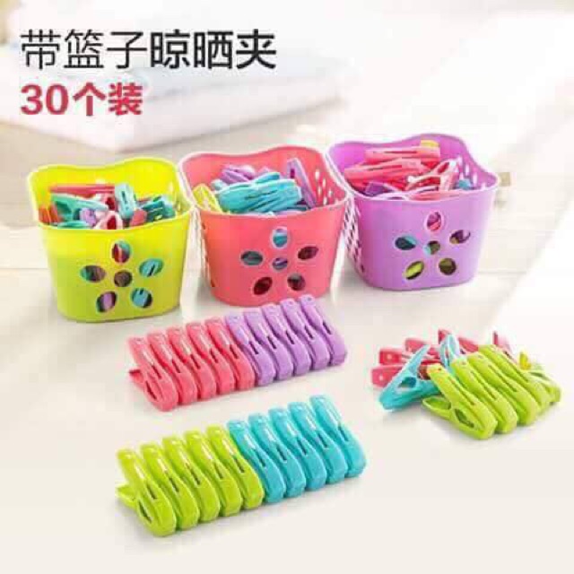 – 1 giỏ 30 kẹp quần áo nhựa.giỏ
