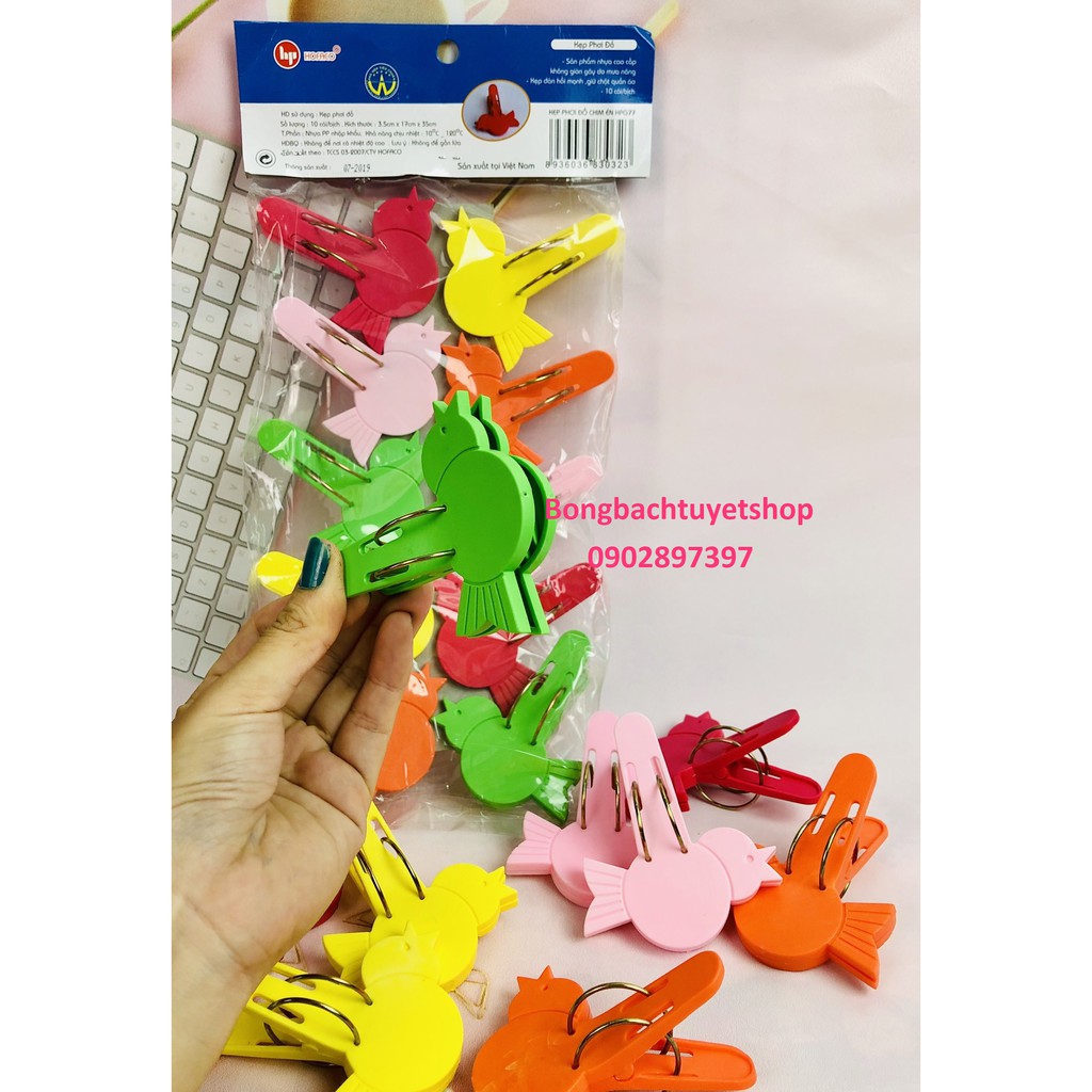 ** Kẹp quần áo hình chim én với thiết kế bắt mắt, màu sắc tươi sáng. Không những giúp bạn kẹp và giữ quần áo chắc chắn khi phơi mà bạn còn có thể sử dụng để kẹp chắc chắn các loại vật dụng gia đình khác.