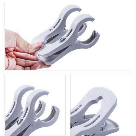Kẹp phơi quần áo, kẹp quần áo bằng nhựa cao cấp tiện lợi và gọn nhẹMột trong những tình trạng khó khăn khi phơi quần áo hoặc chăn mền ngoài trời mà các bà nội trợ thường gặp phải đó là trang phục bị gió thổi bay hoặc dồn lại với nhau. Điều đó không những làm áo quần lâu khô hơn mà còn khiến dây phơi có thể bị đứt, quần áo sẽ bẩn lại hoặc thất lạ khi rơi rớt khắp nơi. Giờ đây những vấn đề đó đã được giải quyết với những chiếc kẹp phơi đồ đôi bản to siêu chắc chắn. ĐẶC ĐIỂM NỔI BẬT: – Được thiết kế đặc biệt để giữ quần áo, chăn màn, khăn, ga trải giường, thảm, thú bông,... khi phơi bảo đảm không bị thổi bay bởi gió lớn – Với 2 hàm kẹp song song với nhau, lực kẹp vô cùng chặt – Được làm từ nhựa cứng bền đẹp, cho thời gian sử dụng lâu dài – Kích thước: 6 x 8 x 13 cm