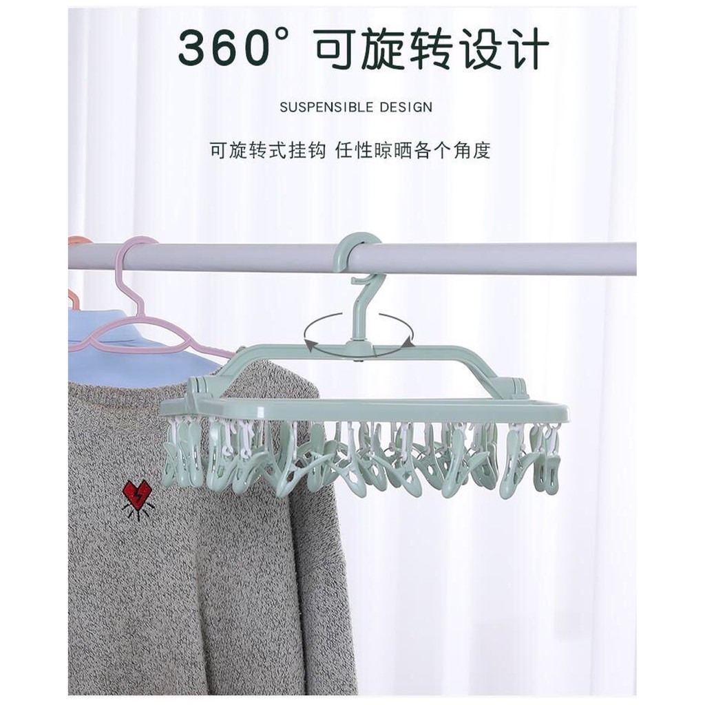 Móc phơi quần áo có kẹp quần áo đa năng có thể gấp gọn - với móc này các mẹ tha hồ phơi đồ lót, tất, đồ cho em bé,...