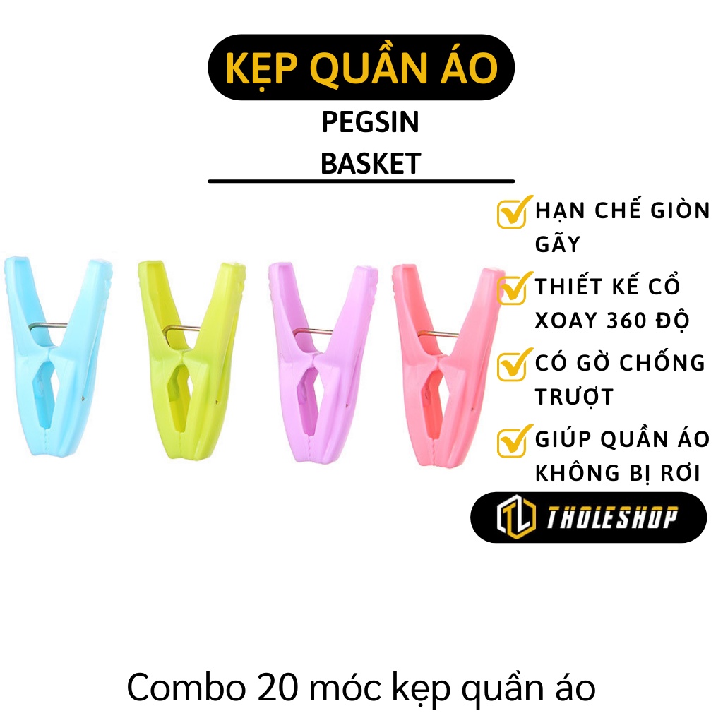 Kẹp Quần Áo - Combo 20 Kẹp Nhựa Phơi Quần Áo Tiện Lợi, Chống Trượt, Xoay 360 Độ 5117