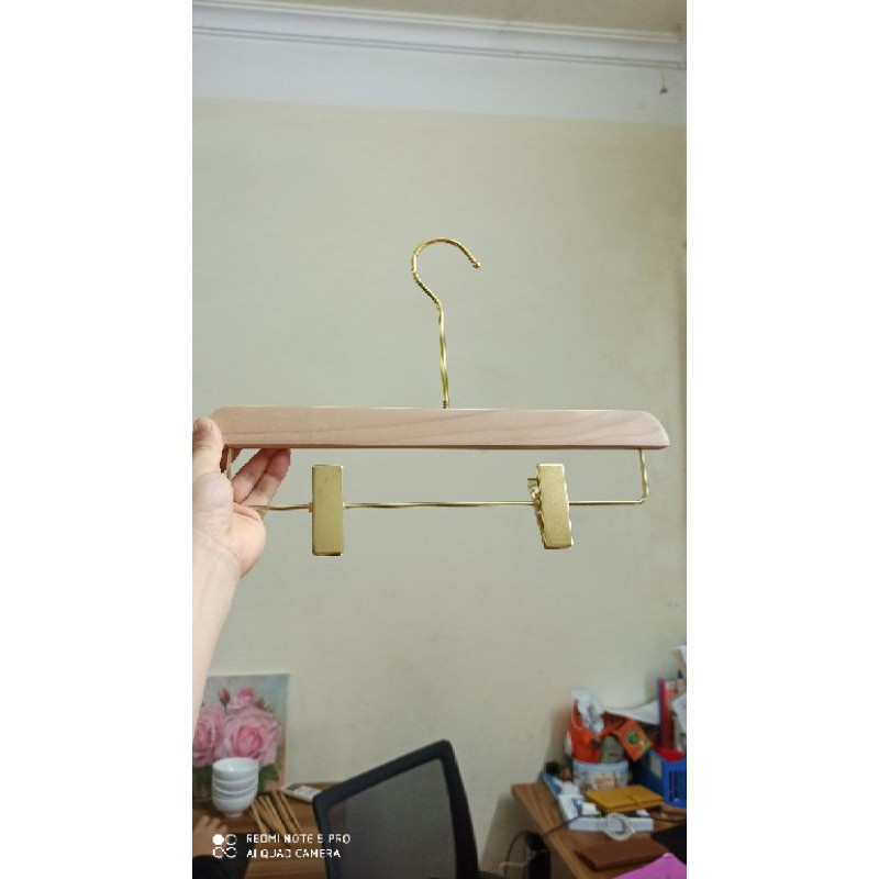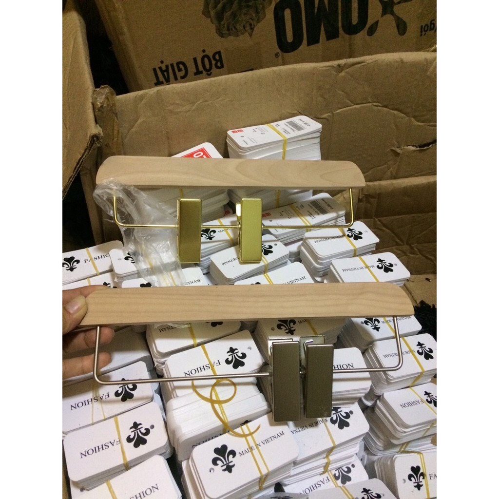 Nhà cửa & Đời sống > Sắp xếp nhà cửa > Mắc áo || kẹp quần bằng gỗ mộc có thanh ngang, móc kẹp quần,chân váy có thanh ngang đầu kẹp mạ vàng, kẹp quần áo,chân váyCòn hàng