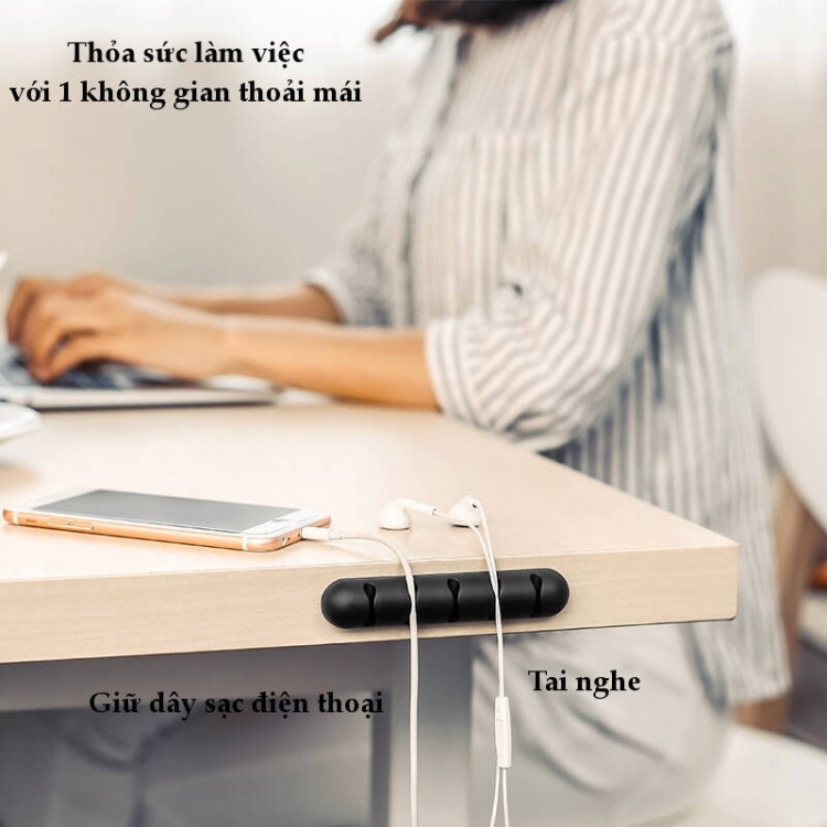 Thanh silicon 5 lỗ kẹp dán cố định dây cáp sạc, dây điện, tai nghe, sắp xếp gọn gàng dây nhợ cho bàn làm việc, xe ô tô.- 100% hàng mới, chất lượng cao.