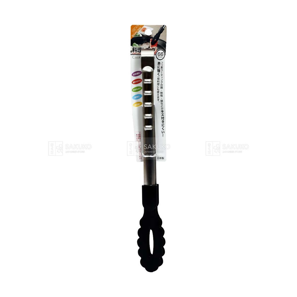 '- Chất liệu: tay cầm bằng inox, phần đầu gắp bằng nhựa chịu nhiệt.