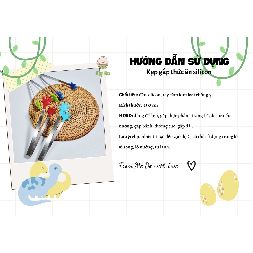 ✔️Cách sử dụng: tay cầm kim loại chống gỉ, đầu silicon chống dính có thể gắp đồ rất dễ và tiện dụng: gắp đồ nướng, gắp bánh, đá, đường cục.