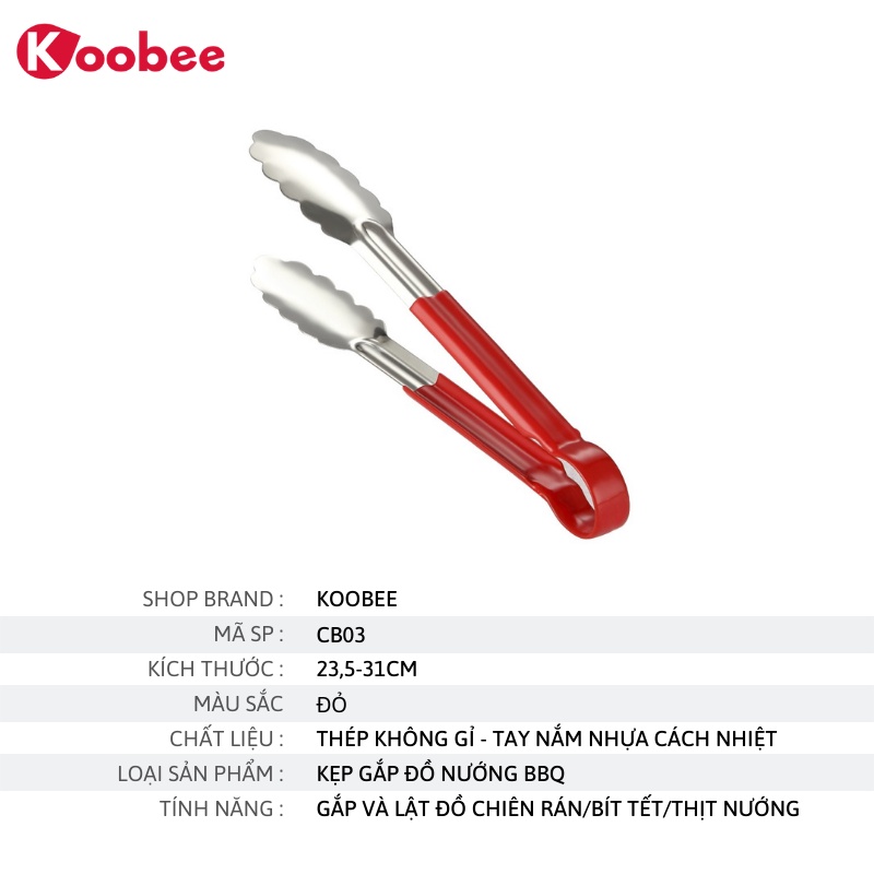 Giới thiệu Kẹp Thức Ăn Thịt Nướng Chống Nóng KOOBEE Cao Cấp - Kẹp Gắp Đồ Ăn Inox 304 Bền Đẹp, Tay Cầm Cách Nhiệt