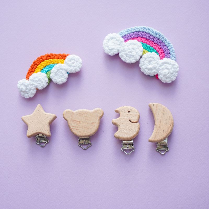 KẸP TI GIẢ CHO BÉKẹp ti giả cho bé. Có thể móc thêm thú và xâu hạt vào trang trí nhé