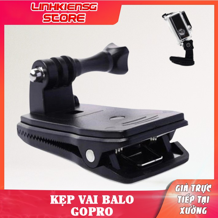 Phụ kiện kẹp ba lô xoay được 360 độ cho máy quay hành động GoPro, Sjcam, Yi Action, Osmo ActionKẹp GoPro - action cam cho ba lô, mũ, nón được thiết với các răng cưa giúp tăng độ ma sát bám dính đảm bảo kẹp chặt và chắc chắn. Ngoài ra, Kẹp ba lô còn có trục xoay 360 độ, dễ dàng thao tác và điều chỉnh gốc độ chụp theo ý thích.