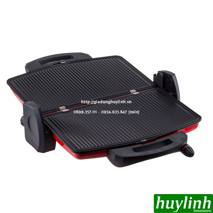 - Khi mở ra 180 độ bạn có thể sử dụng như 1 chiếc vỉ nướng điện thông thường với 2 bên khay nướng với 2 nút điều chỉnh nhiệt độ khác nhau