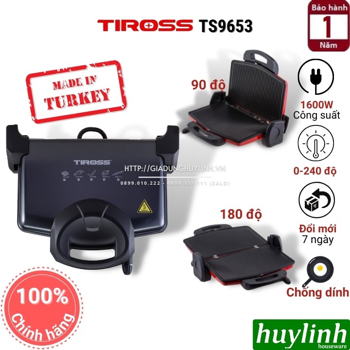 Giới thiệu [Mã ELHAMS5 giảm 6% đơn 300K] Kẹp - vỉ nướng điện đa năng Tiross TS9653 - 1600W - Thổ Nhĩ Kỳ