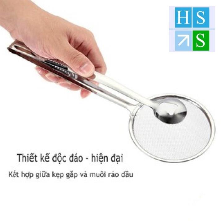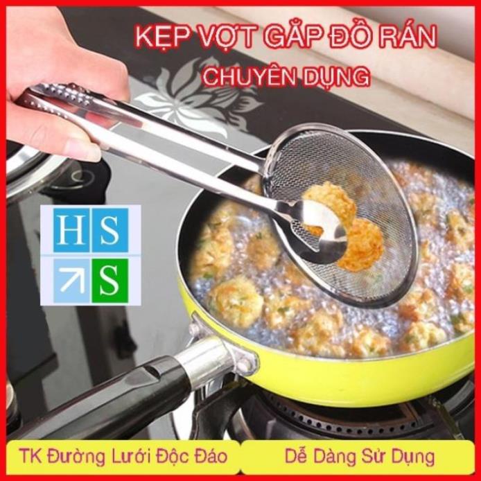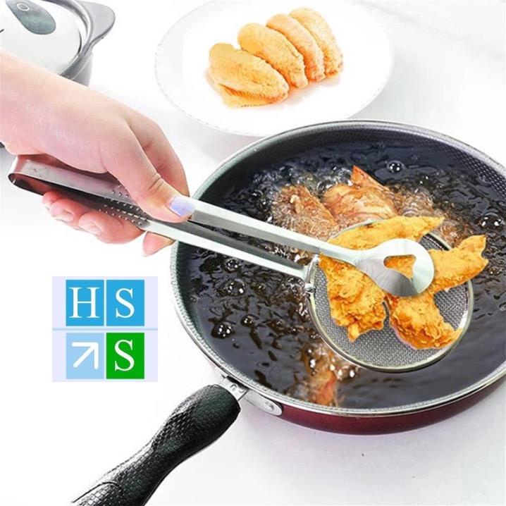 • Kẹp gắp vớt thức ăn chiên rán có thiết kế độc đáo gồm kẹp gắp đi kèm với muôi lưới giúp bạn có thể gắp vớt đồ ăn từ chảo mỡ mà không lo gắp trượt, đồng thời dễ dàng làm ráo mỡ thức ăn sau khi vớt khỏi chảo